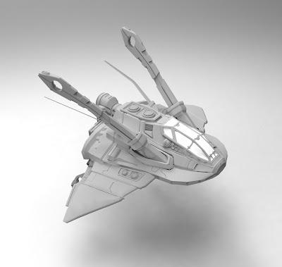 just wanted to post some quick shots of a spaceship I built in maya. Hoping to get around to wrapping this up soon, contemplating bringing it into z brush for detail work.